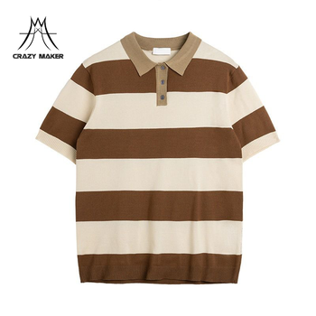 Moda uomo estate a righe bottone in maglia Polo maniche corte Vintage top t-shirt maglioni